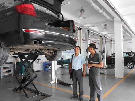 连经理还陪同张信群一行参观了滁州宝马4s店的展厅、售后和维修车间。张信群详细了解了各个岗位对员工职业技能的基本要求,并介绍了我院汽车营销与服务专业学生近几年在周边4s店的实习情况。