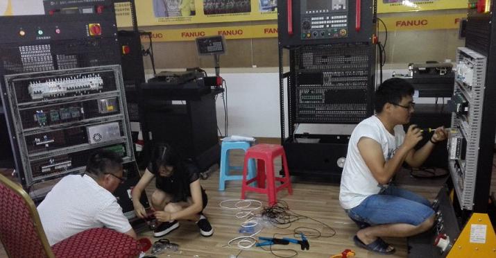 本次培训主要内容包括。:数控机床的基础知识、FANUC Oi的硬件连接、FANUC Oi数控系统电气线路、数控系统参数的备份与恢复、FANUC Oi系统的参数设置、FANUC Oi系统数控机床的故障诊断与排除。对于培训的每一项内容,每位学员都亲自动手积极参与,遇到不懂的问题都积极与培训老师进行沟通交流。