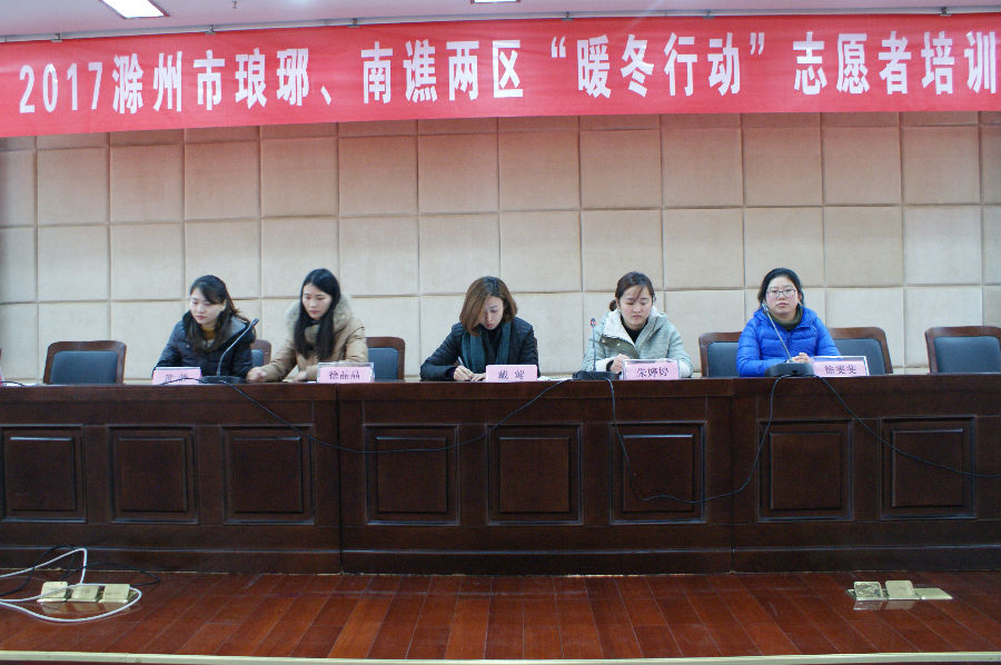 培训会由朱婷婷主持,共有四项议程,首先由琅琊团区委副书记徐晶晶介绍暖冬行动具体情况并传达了《关于全力做好 2017 年中国青年志愿者服务春运“暖冬行动”工作的通知》的文件。接着由志愿者代表领誓,全体志愿者共同宣读青年志愿者誓词,庄严的誓词,激情的宣誓将培训会推向了高潮。团区委工作人员向志愿者讲解了“暖冬行动”的具体活动流程以及“志愿中国”系统、志愿汇APP 的使用方法。