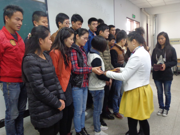 会上首先上届学生会主席徐阳对自己的工作做了总结,并对刚上任的学干给予了鼓励。接着,本届学生会主席李斯亮上台做了就职演讲,表明了自己的决心以及把工作做好的信心,并以一段饱含深情的ppt对即将离校的11级学干们表示衷心的祝愿。紧接着,主持人公布了换届后各部门上任部长及试用的学干名单。随后,学生会指导老师赵晶丽发表讲话,赵老师对新一届学生会作了新的要求,也提出了新的期望。与此同时也向11级辛勤工作的学干们表示衷心的感谢,并为他们颁发了优秀学干聘书。最后,大家在离别中、在欢笑中合影留恋。