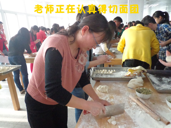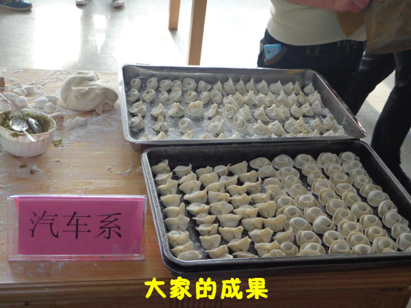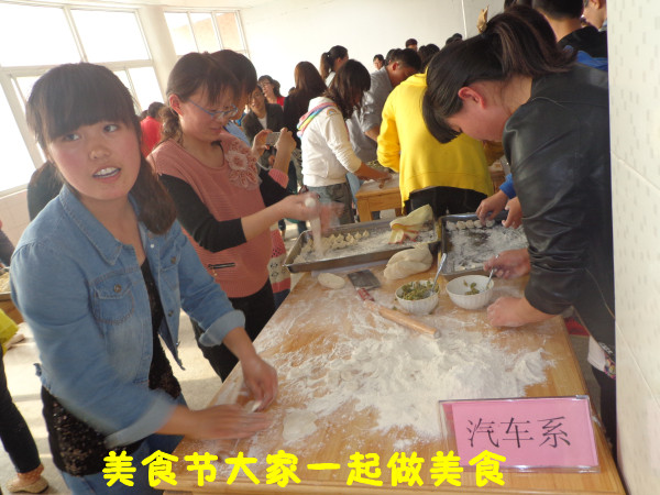 今天美食节的活动是包饺子,每个系派出了三名学生和一名教师代表去参加。其中汽车系参赛的老师是王素珍。比赛一声号响,全场情绪就高涨起来,只见王老师和同学们擀面皮的擀面皮,包饺子的包饺子,各司其职。在规定的时间内,不慌不忙地包了163个饺子,并在大众投票环节中获得了10张宝贵的票数。