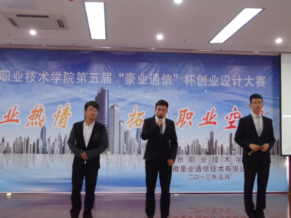为了激发同学们的创业热情,拓展职业空间。2013年5月29日由beat365在线唯一官网主办,安徽豪业通信技术有限公司协办的第五届“豪业通信”杯创业设计大赛决赛,在综合楼五楼报告厅拉开帷幕。