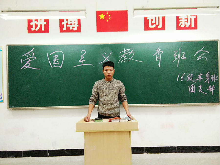 在本次主题团日中,同学们积极参与,积极响应“爱国主义”的号召。不仅如此,在此例会中还以朗读具有“爱国主义精神”的诗歌,从实际角度出发,展现出我系汽车车身与维修班同学们的精神风貌和浪漫情怀。