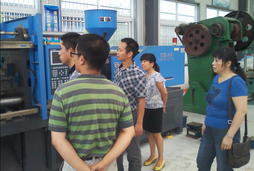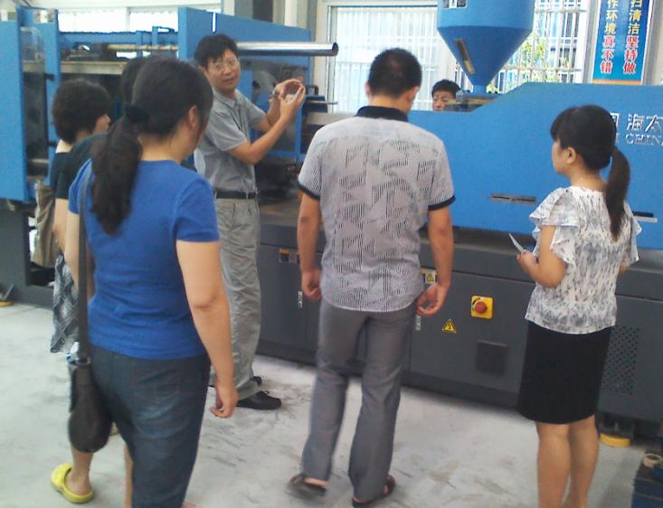 培训时间正值全省的高温天气,为了更好的学习这边的模具实习实训教学,学员们顶着酷暑在高温的钢构房里呆了两天,仔细观摩学习了冲压模具、塑料成形模具的安装与调试,冲压制件、塑料挤压拉伸、塑料注塑的现场生产过程。