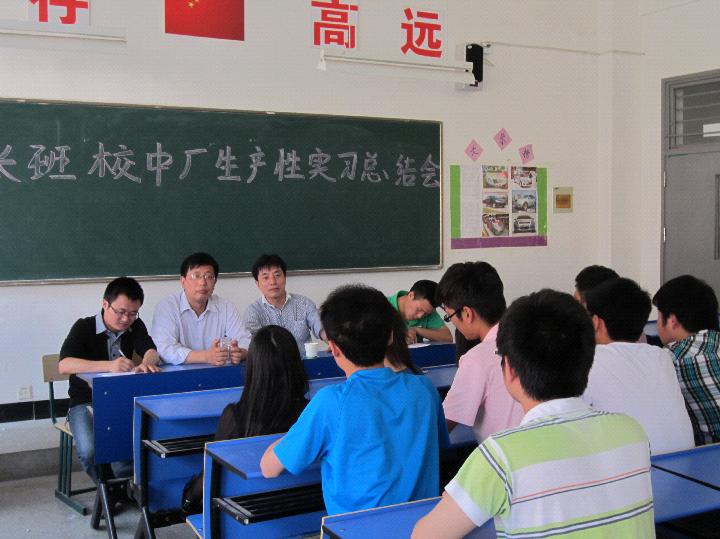 2013年5月28日下午,汽车工程系在5211教室召开2012级天长班学生“校中厂”生产性实习座谈会。实训处曹晓斌处长、顾宏才老师和天长班辅导员李立蔚出席会议,会议由汽车系教学负责人张信群主持。