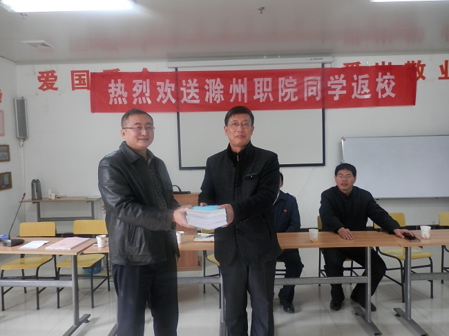 明光三友电子公司李辉副总经理还向张信群副主任移交了装订成册的实习学生心得体会及其培训资料,为进一步总结实习经验积累了素材。