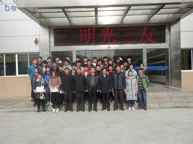 2016年11月30日,我院汽车工程系模具设计与制造专业2014级模具专业34名同学圆满结束在明光三友电子公司的顶岗实习工作,满载实习经验返回学校。明光三友电子举行了别具一格的欢送仪式,祝贺同学们顺利完成顶岗实习工作。