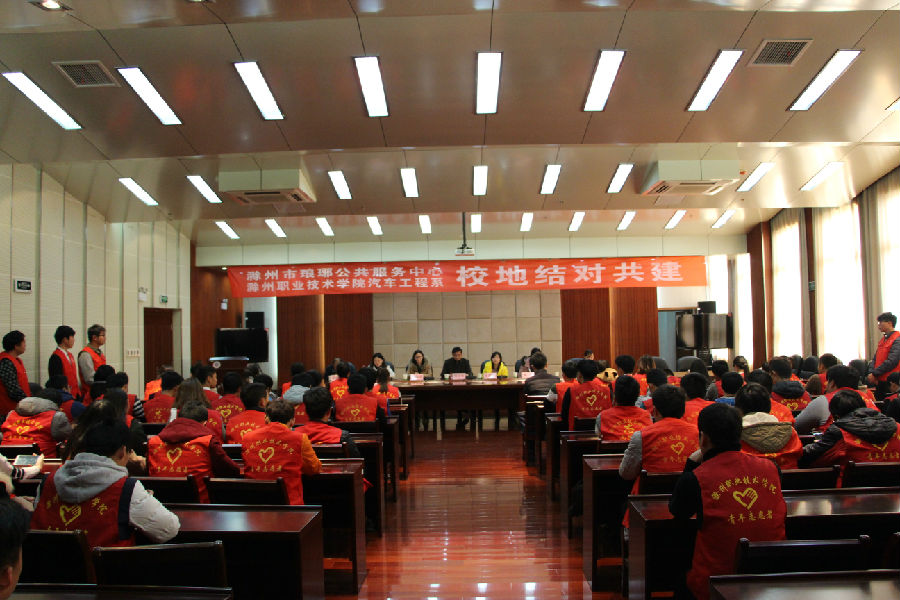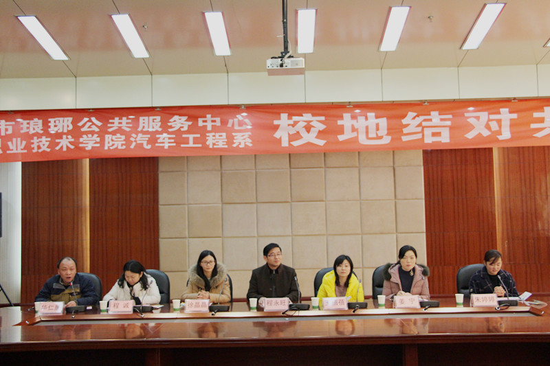 2016年12月16日下午2点30分,滁州市琅琊公共服务中心与beat365在线唯一官网汽车工程系团总支开展了“校地结对共建”活动。本次活动在beat365在线唯一官网综合楼11楼会议室举行,参与嘉宾有琅琊公共服务中心党工委书记程永旺、学院团委书记王蓓蓓、琅琊公共服务中心副主任姜宁、琅琊区团委副书记徐晶晶、学院团委副书记程诚、琅琊公共服务中心团工委书记董昊、汽车工程系团总支书记朱婷婷老师以及汽车系学子。本次会议由学院团委老师华仁康主持。