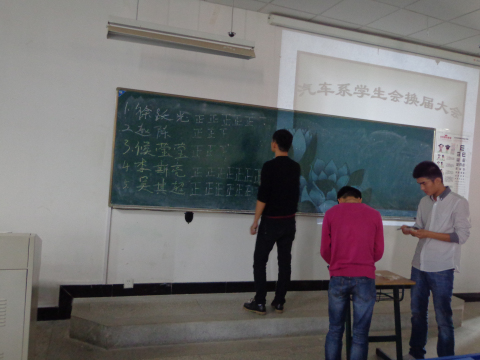 2013109日,汽车系学生会在北阶206举行了换届选举大会,此次会议由学生会新闻部部长李芳芳主持,学生会指导老师赵晶丽、系团总支部书记吴佳佳、院学生会代理主席李维冲以及学生会全体学干参加。