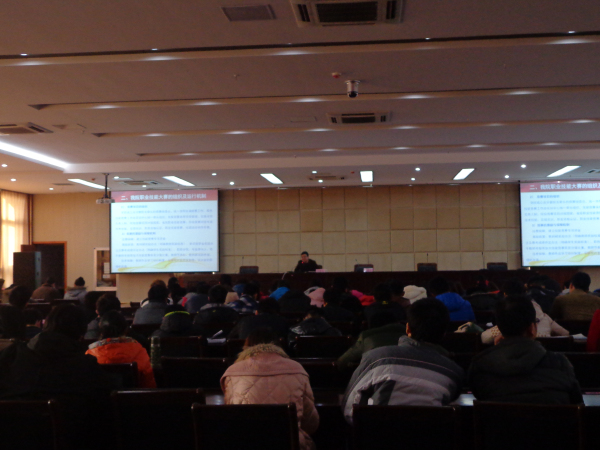 为了加强汽车系师生对职业技能大赛的了解,鼓励师生技能创新,2013年12月11日下午,汽车系教授张信群带领汽车系师生队伍,参加了由六安国防科技职业技术学院李存鹏老师主讲的讲座。