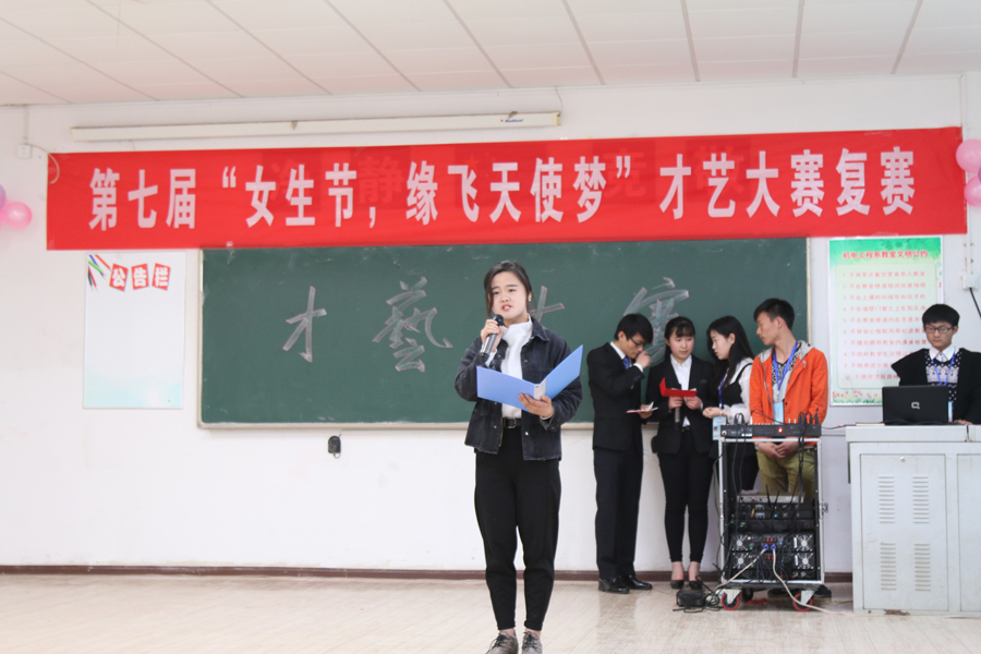 为丰富女生活动,展现女生魅力。2016年3月18日由院团委主办,汽车工程系承办的“女生节,缘飞天使梦”才艺大赛复赛在5403教室成功举办。本次活动邀请了实训中心副主任刘杰、汽车系吴佳佳、姚芳老师担任评委。本次比赛活动氛围浓厚,各系选手们也用精彩的才艺为老师和同学们献上一场文艺盛宴。