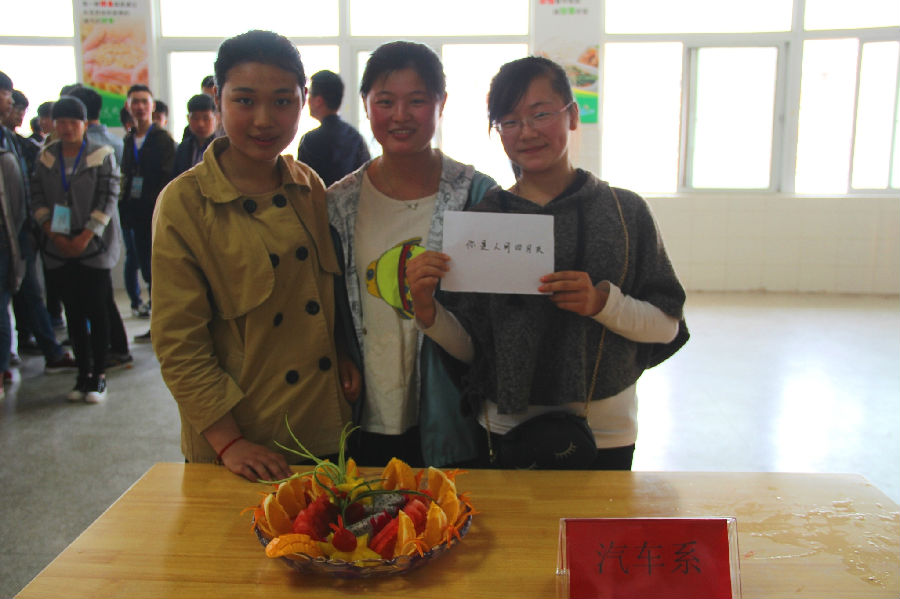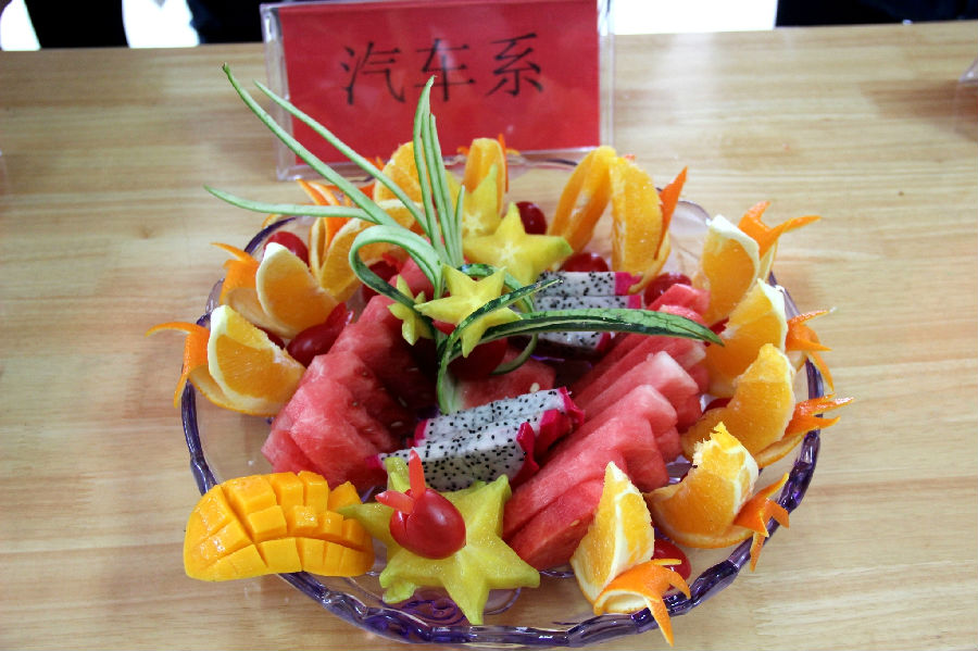 汽车工程系陈双悦、单佳佳、周鑫三位同学参加了此次“倾果倾城”水果拼盘大赛并取得第一名的好成绩。预祝汽车系在接下来的美食节系列活动中取得更加优异的成绩。