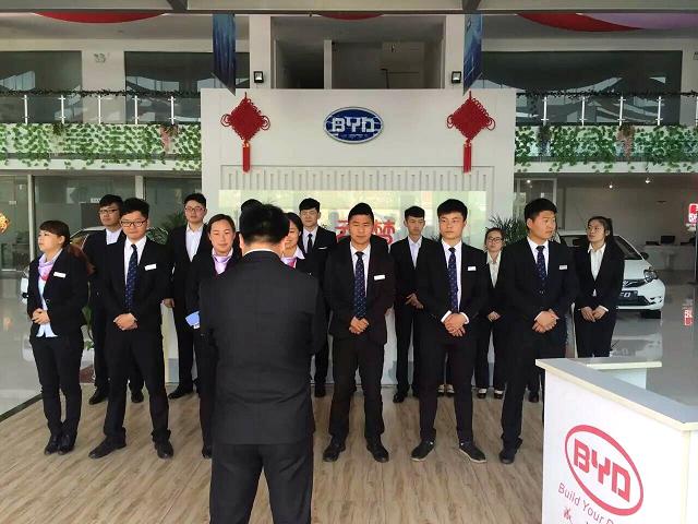 同学们每天早晨会在八点钟赶到比亚迪4S店,进行对展厅以及前台和车辆的清理擦拭工作,在打扫卫生的时候大家都会很认真,这也显示出我们各位同学对这次顶岗实习的机会的一种重视。在进行完清扫之后经理会简短的开一次早会分布今天所要完成的任务,和总结前一天的得失。