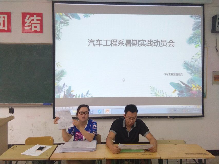 为进一步将我系暑期社会实践活动的各项任务安排到实处,汽车工程系于2017年6月21日中午13:00在5113教室召开暑期社会实践动员会。此次会议由汽车工程系团总支书记朱婷婷老师主持,汽车工程系王老师,16级团支书及每个实践分队负责人参加。
