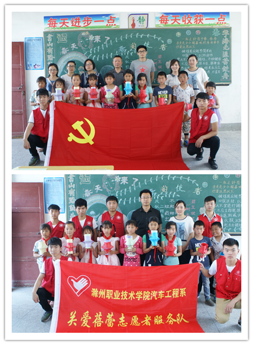为了进一步弘扬志愿者精神,深入贯彻“一学一做”教育实践活动,鼓励团学青年积极投身志愿服务队伍,2017年5月26日下午,由汽车系团总支与滁州市南谯区汪郢小学校地结对共建的“大学生志愿服务基地”正式落户。南谯区团委书记戴莺、汪郢小学校长樊冬明、汽车系团总支书记朱婷婷、实训中心老师王伟以及20余明志愿者参加本次活动。