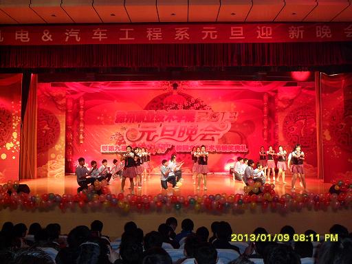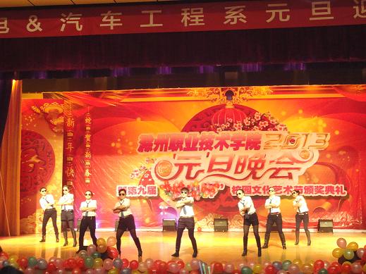 2013年1月9日晚,由汽车系与机电系联合举办的元旦迎新晚会在院大礼堂隆重举行。本次晚会院领导、相关部门领导、两系领导以及两系的老师们都亲临现场观看。两系同学以及各系学生代表也都准时到场,活动现场座无缺席。