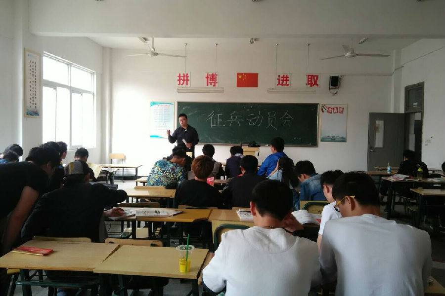 各班班会上各班辅导员首先就所有人最为关心征兵的就学、就业、经济补助等方面政策进行了详细的解释说明,随后又向学生们介绍了2016征兵工作的预征对象、身体条件等情况。接着又对之前学生提出的有关学费减免、落户要求、复学助学等相关问题作出了回答,会场气氛十分热烈。最后,她阐述了大学生入伍对于自身塑造和锻炼成才的重要意义并希望各同学能把握报效祖国的机会。