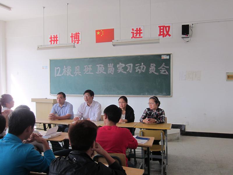 2013年9月26日下午,汽车工程系在5211召开赴企业顶岗实习动员会议,系教学负责人张信群教授、模具教研室主任龚厚仙老师、辅导员徐云龙老师和专业课教师杨苗苗老师出席会议,12模具班全体同学参加会议。