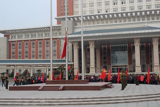2013年3月5日上午七时二十分,学院学雷锋志愿服务月启动仪式暨升旗仪式在新校区国旗下开展,汽车系100名学雷锋志愿者参加。