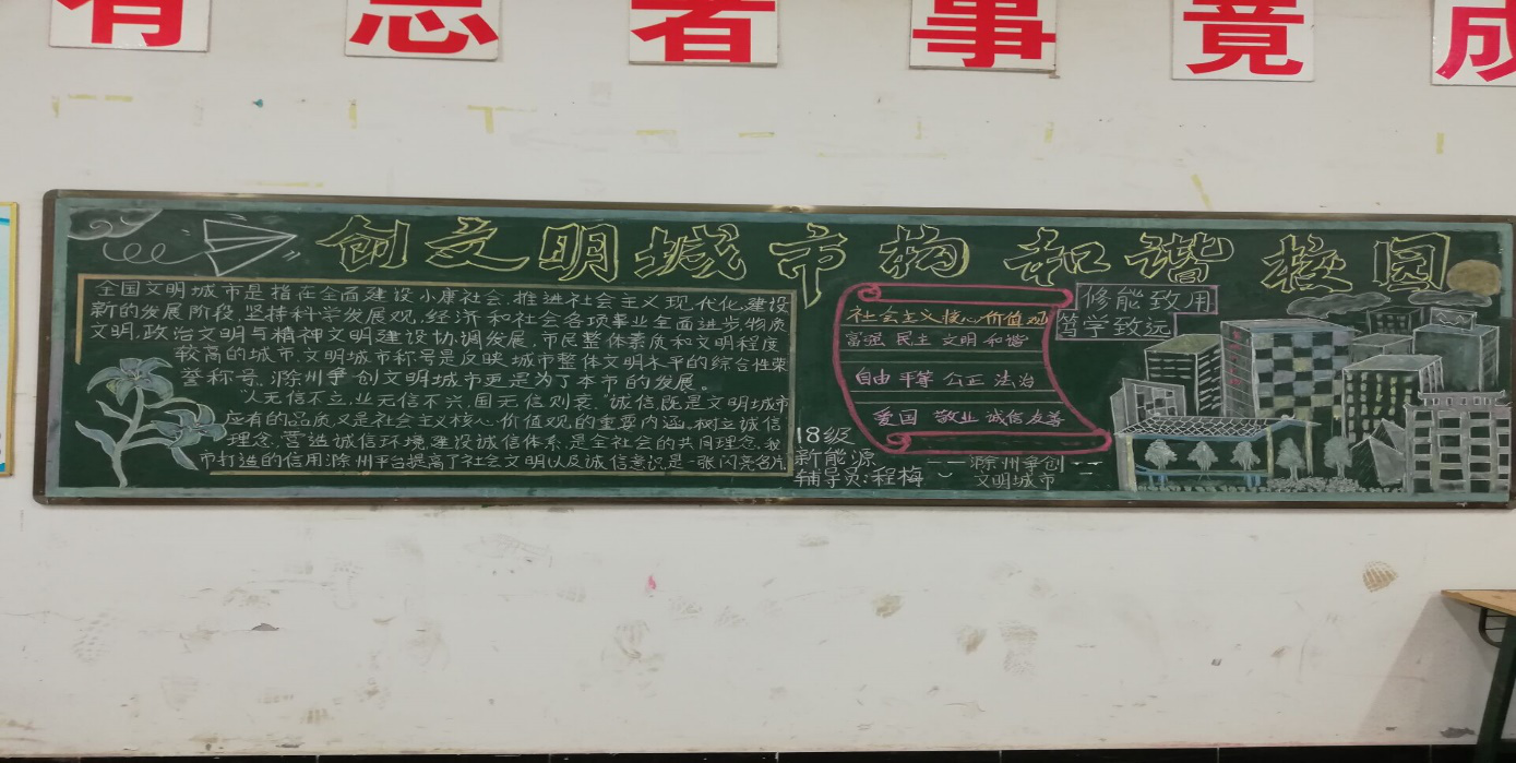 为助力创建全国文明城市,全面提高大学生文明素养,营造和谐融洽的校园环境,形成富有特色的班级文化,beat365在线唯一官网汽车工程系团总支开展“创文明城市,构和谐校园”主题黑板报评比活动。