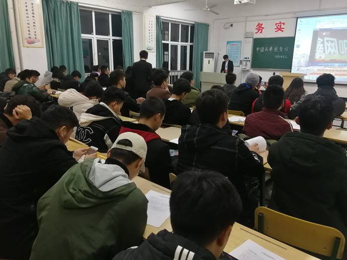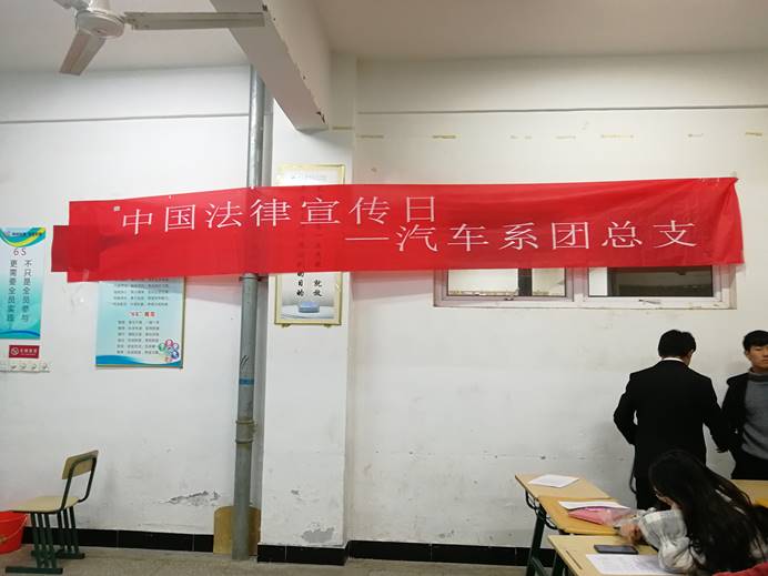 为深入开展法制宣传教育,弘扬社会主义法制精神,进一步培养学生法制观念,beat365在线唯一官网汽车工程系团总支于2018年12月4日在5213教室开展了一次法制宣传活动,团总支全员参加。