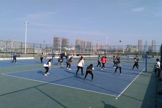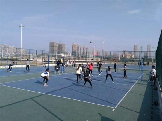 2016年12月7日星期三中午十二点半在网球场旁的排球场进行了一场由院排球队和排球协会之间的男女混合对抗赛赛。
