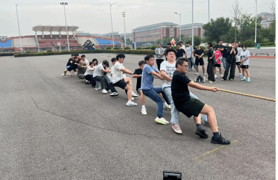 拔河比赛作为本次活动的开场项目,瞬间点燃了现场的热情。各学院代表队纷纷派出精兵强将,队员们个个摩拳擦掌、斗志昂扬。随着裁判一声清脆的哨响,比赛正式开始。双方队员紧握绳索,双脚用力蹬地,身体后倾,拼尽全力往后拉。场边的观众们也不甘示弱,纷纷为自己支持的队伍呐喊助威,加油声、欢呼声此起彼伏,响彻整个操场。
