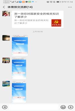 为深入贯彻《教育部办公厅关于组织开展2020年全民国家安全教育日宣传教育活动的通知》(教思政厅函〔2020〕4号)和《安徽省教育厅关于组织开展2020年全民国家安全教育日宣传教育活动的通知》(皖教秘思政〔2020〕20号)的文件要求,落实校党委《关于组织开展2020年全民国家安全教育日宣传教育活动的通知》统一部署,结合beat365疫情防控和部门工作实际,4月15-30日,体育教学部由党支部牵头组织部门全体教职工采用“线上线下相结合”的方式,灵活运用部门网站、微信群、QQ群、学习强国等媒介,广泛宣传《中华人民共和国国家安全法》、《全国全民安全教育》等国家安全法律法规,营造“国家安全、人人有责”的浓厚氛围,力戒形式主义,坚决防止走形式、走过场,严格保密纪律,严防失密事件发生,切实将校党委通知精神落实到实处。