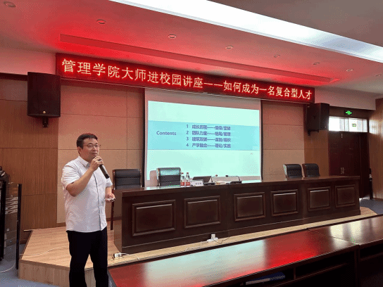 9月13日下午,管理学院在南阶205教室成功举办了主题为“如何成为一名复合型人才”的大师进校园讲座。金鹏董事长助理兼金鹏绿建总经理胡家顺博士受邀担任主讲。管理学院院长翁嘉晨、副院长颜洲、管理学院和商学院全体教职工以及100余名学生聆听讲座,讲座由翁嘉晨主持。