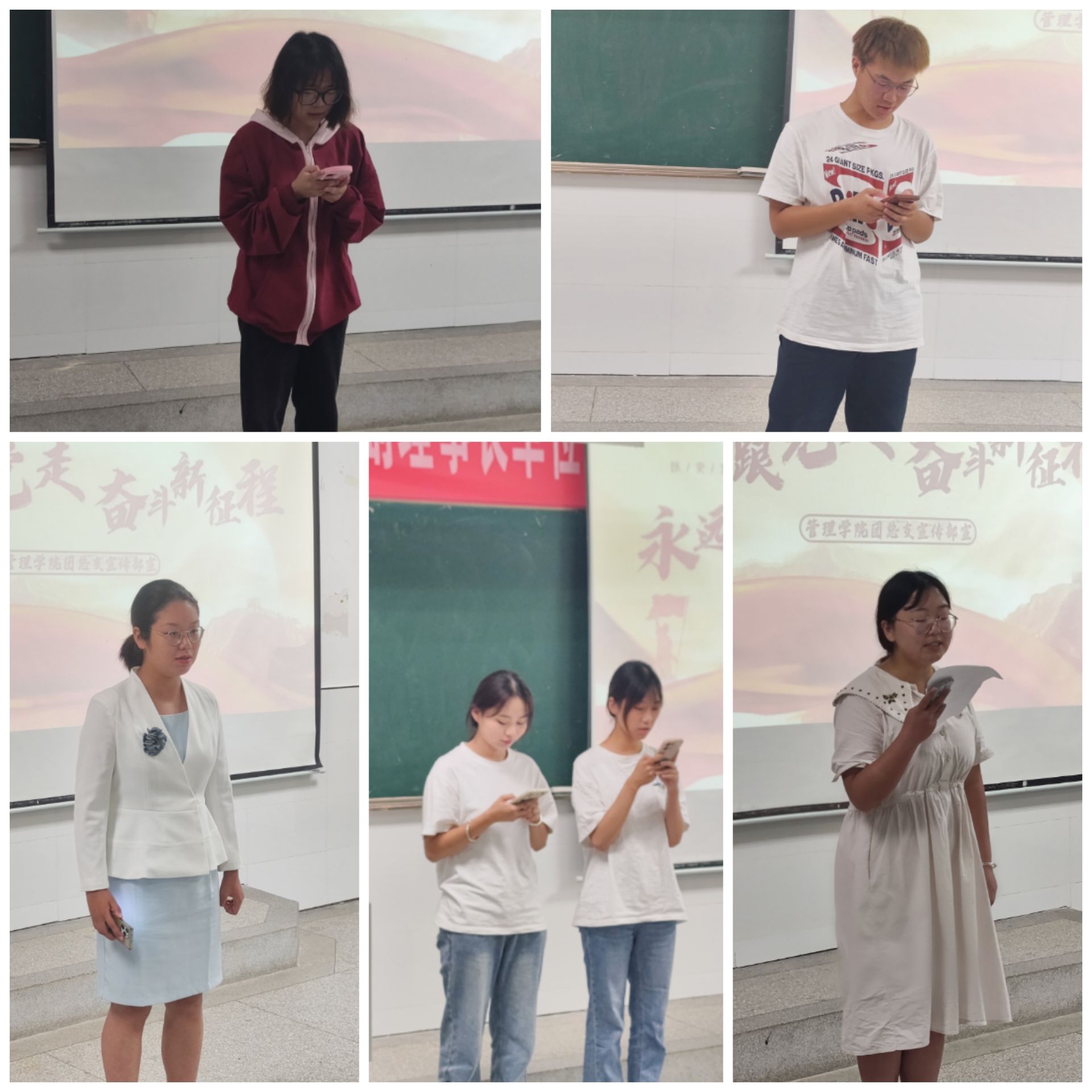 为弘扬中华优秀传统文化,全面提高学生的人文素质,丰富学生的文化生活,推动校园文化建设。管理学院团总支于2023年9月15日11:40在1102教室举办“永远跟党走,奋进新征程”经典诵读活动,本次活动由团总支宣传部负责,22级同学积极参加。