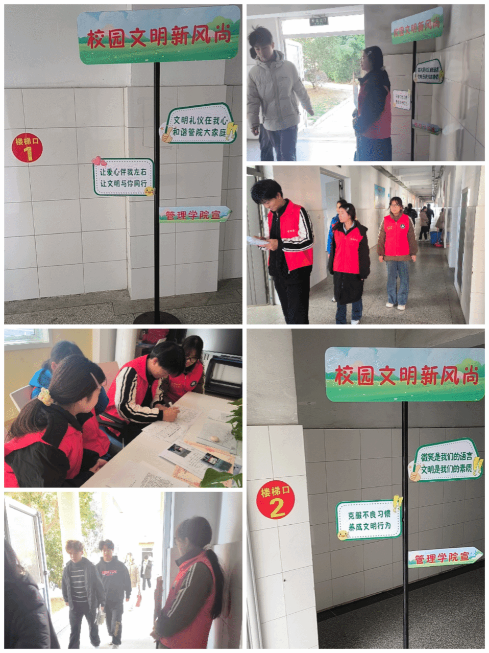 为进一步推动beat365文明创建工作,提高学生的文明素质,加强学生日常管理,营造奋发向上的学习氛围,管理学院启动校园文明督查行动。
