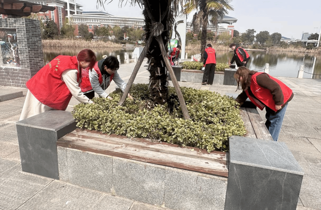活动当天,大家有序分工、团结协作,对校园内草坪上、道路上的垃圾进行“地毯式”清扫,一群红马甲穿梭在校园内,忙碌的身影成就了一道亮丽的风景线。不仅为春光明媚的三月增添了盎然的绿意,更是用一名中共党员的行动完美诠释了爱护环境、和谐共生的生态理念。
