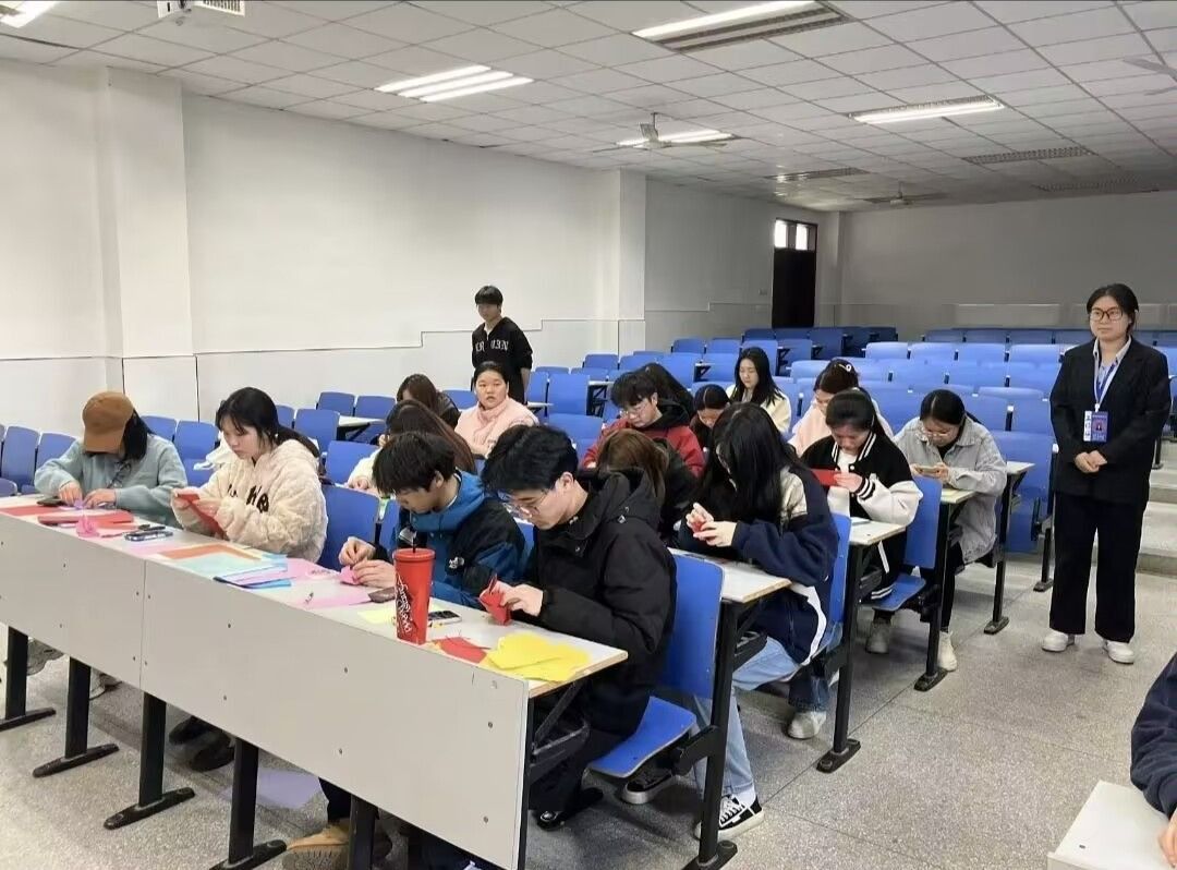 本次活动由管理学院学生会纪检部工作人员在教室门口引导学生,学生就坐后发放彩纸和剪刀。活动过程中,同学们热情高涨,纷纷发挥自己的想象力,将一张张彩纸变成了一朵朵精美的花。现场气氛热烈,同学们互相交流、切磋技艺,欢声笑语不断。这次活动不仅让同学们放松了心情,还增强了同学们对手工制作的兴趣和爱好。同时,也体现我院对学生综合素质培养的重视,为校园文化注入新的活力。