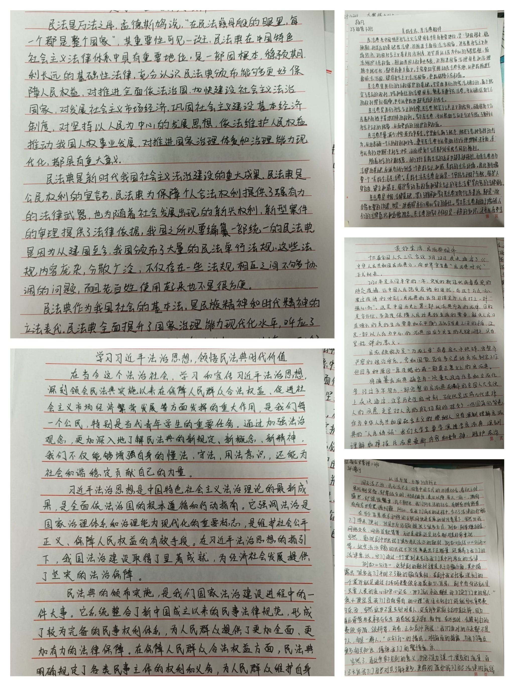 此次征文活动不仅提高了同学们的写作能力,也让他们更加深入地了解民法典在校园中的应用和影响,并进一步推动《中华人民共和国民法典》的宣传和普及。管理学院将继续以此为契机,让更多的同学了解和学习民法典,提高自身的法律素养,构建和谐稳定的校园。