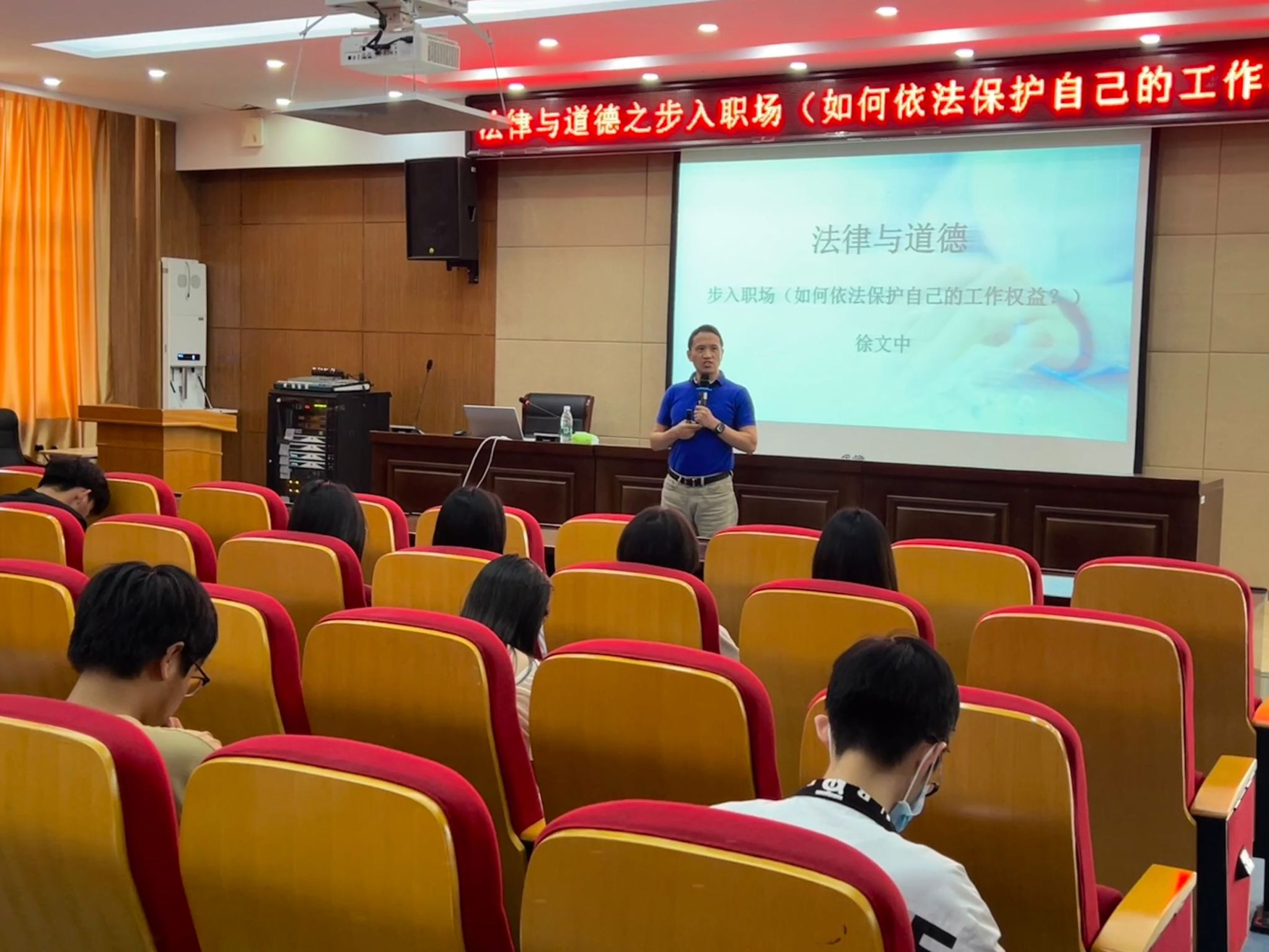 2024年5月29日,管理学院在南阶205教室开展大师进校园活动。我院荣幸地邀请到天津财经大学EMBA管理学硕士徐文中老师,为同学们带来“法律与道德之步入职场”的讲座。在讲座中,徐文中大师深入浅出地讲解了劳动法、合同法、知识产权法等职场中常用的法律知识。同时,用生动有趣的案例,以及详实的案例分析,帮助我们的同学们理解了法律与道德在职场中的关系,以及如何运用法律和道德来保护自己的权益和声誉。