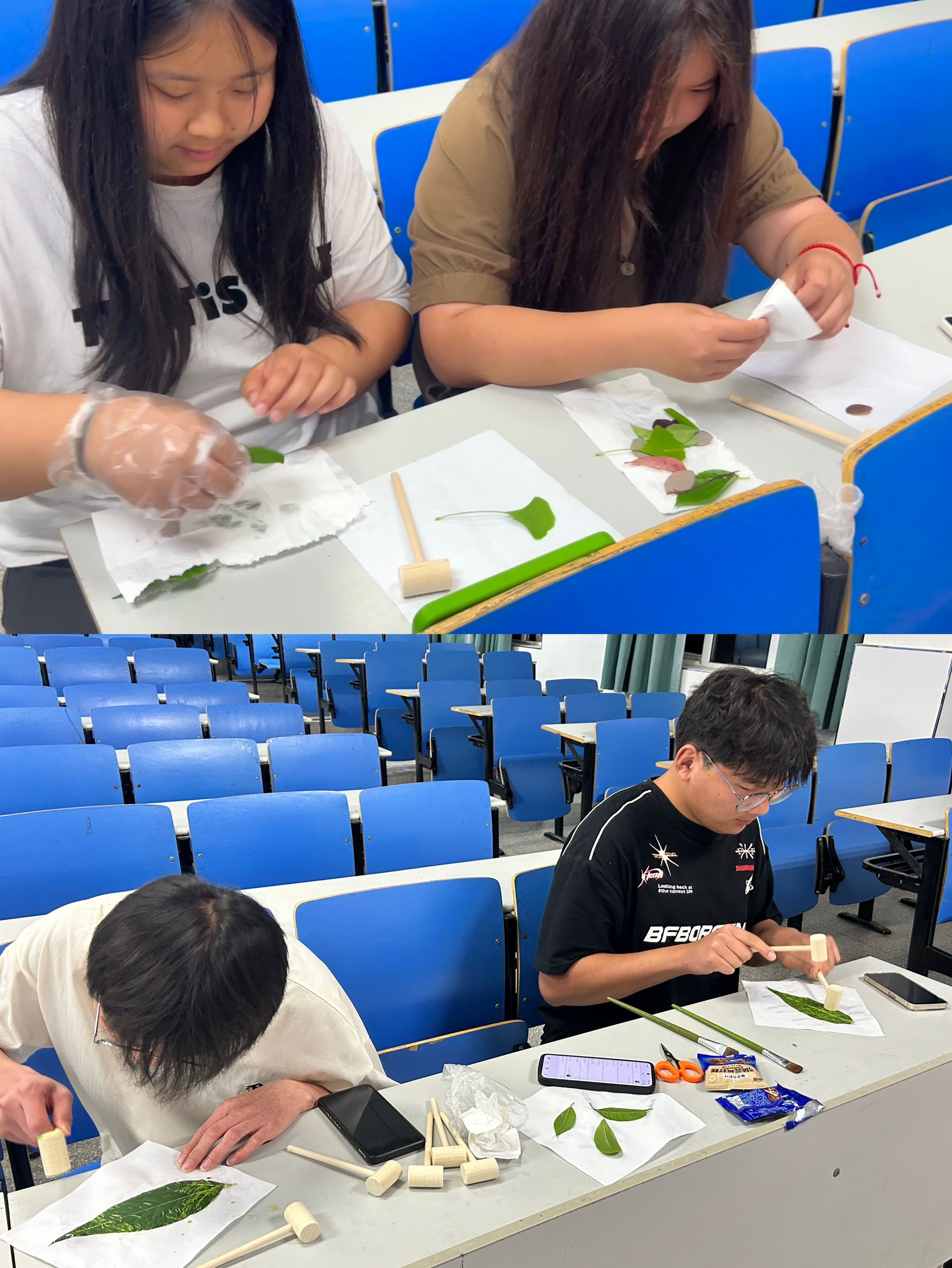 2024年6月10日,管理学院学生会宣传部在致真楼1102教室举办“拓花草之印,染自然之美”植物拓染活动。