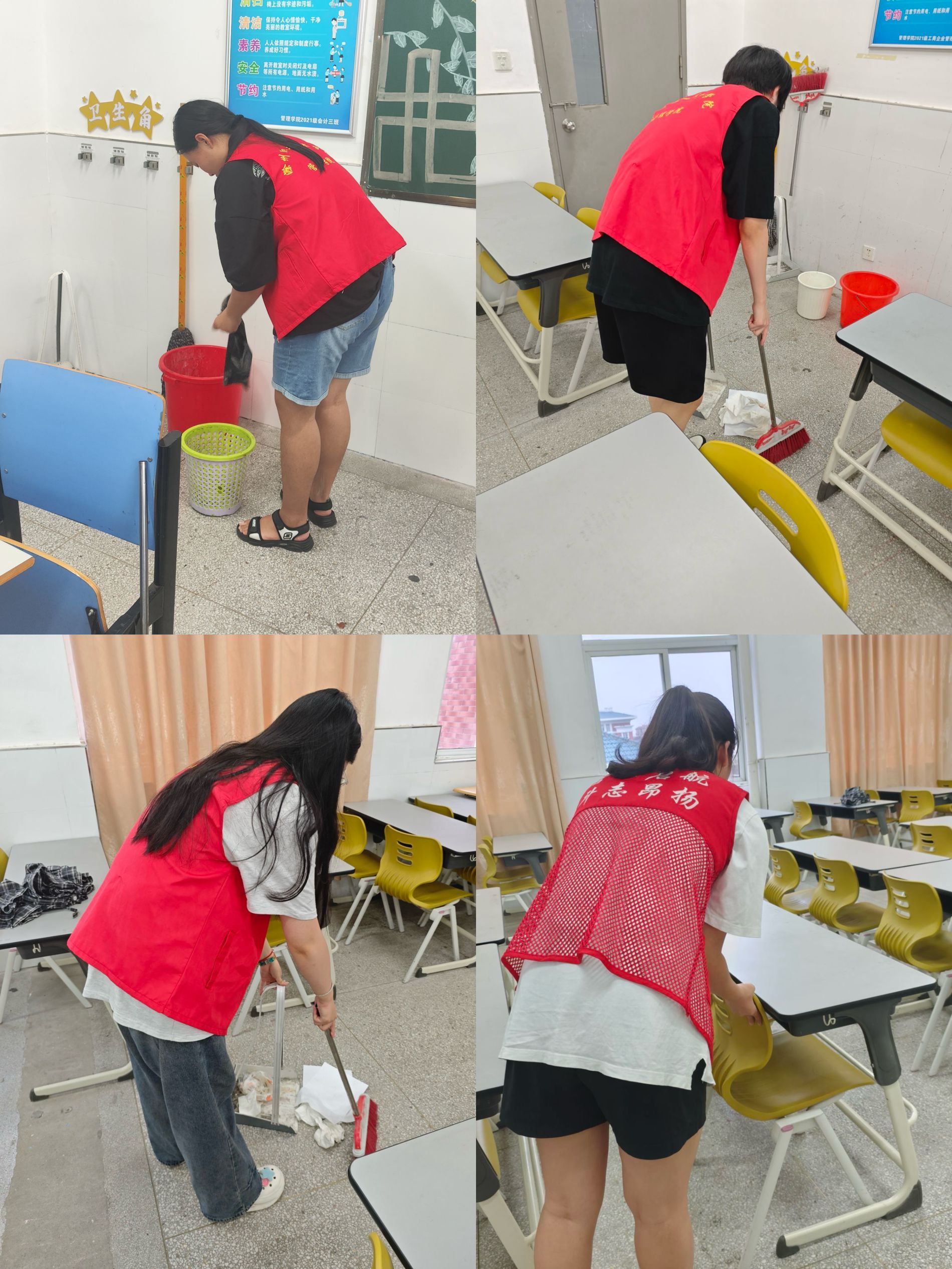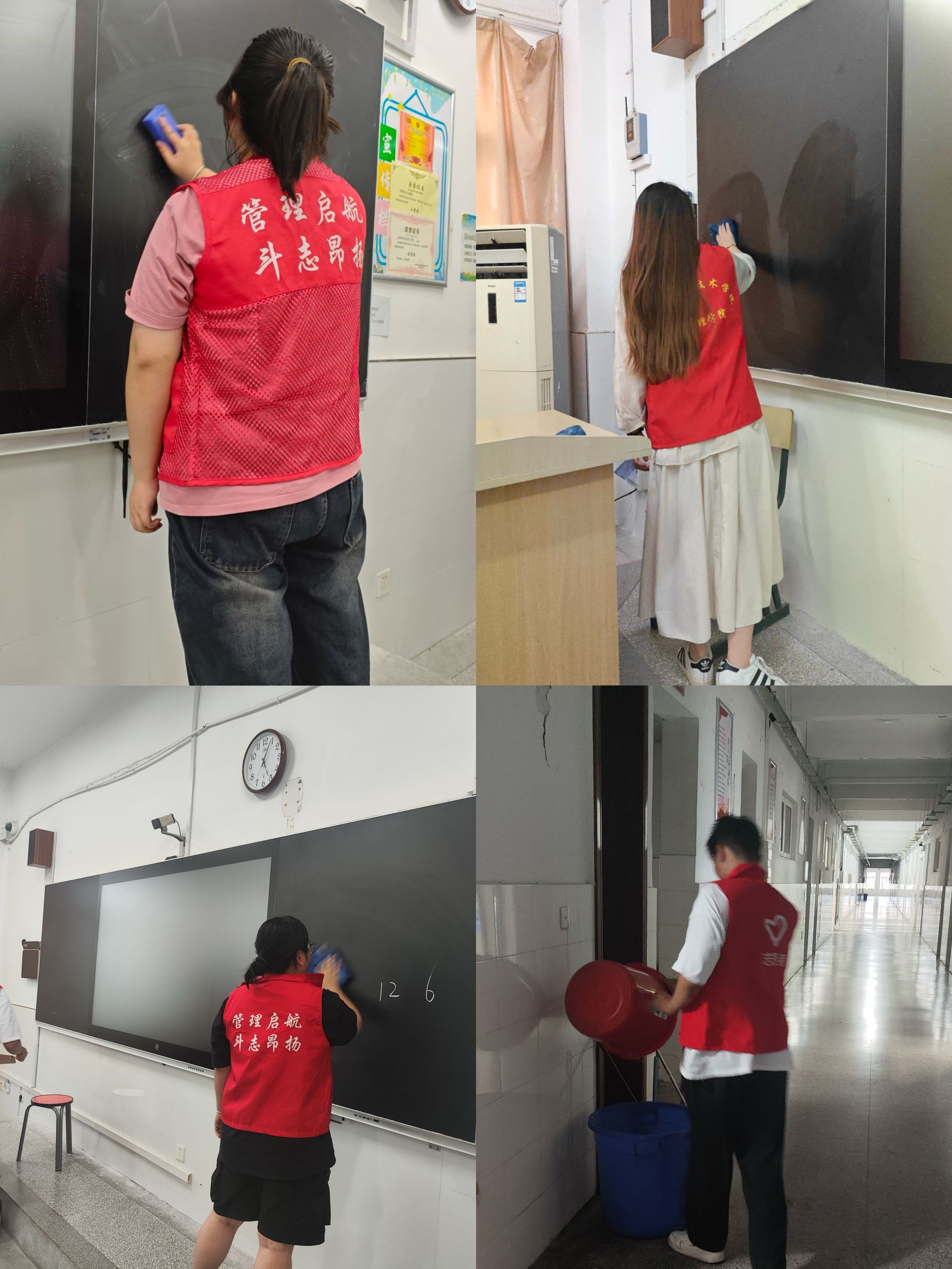 为进一步营造一个整洁、优美、文明、卫生的校园环境,开启美好暑假,管理学院学生会在2024年6月26日组织学生在致真楼开展教室卫生大清扫。