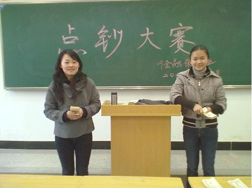 12月1日下午,经贸系金融专业的“点钞大赛”在1220教室举行。