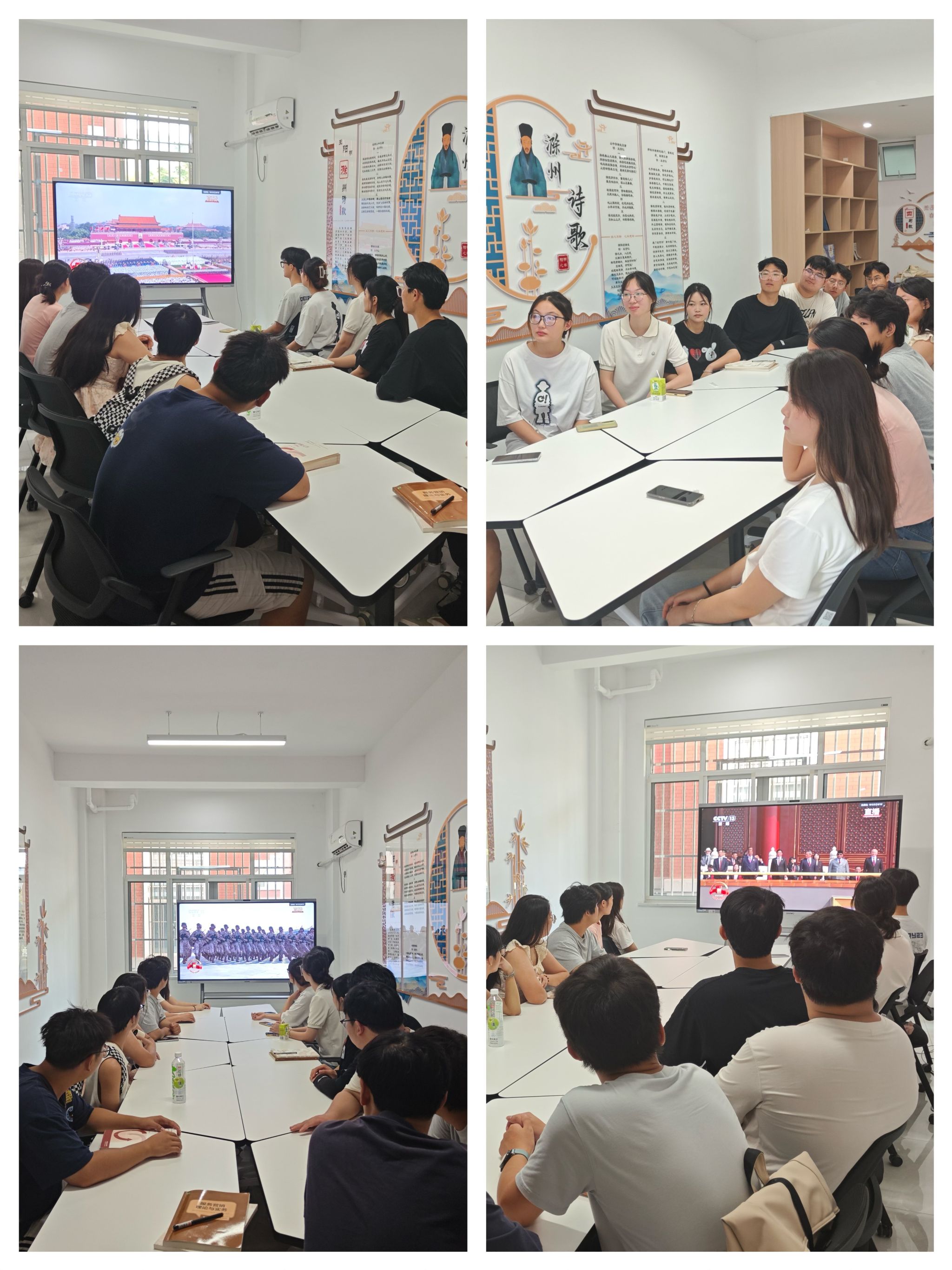 为深切缅怀革命先烈,弘扬伟大抗战精神,激发青年一代的爱国热情与历史责任感。2025年9月3日上午,管理学院组织青年学生代表,分别在学生一站式社区(阳明书院)和学院团总支1109办公室集中观看“纪念中国人民抗日战争暨世界反法西斯战争胜利80周年大会”的现场直播。