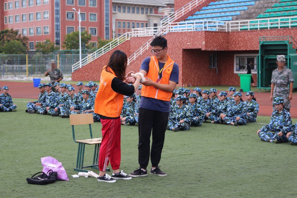 为了新生的安全意识和救护技能,带动商学院、管理学院同学学习应急救护知识,提高自救互救能力。9月17日商学院、管理学院团总支成员王磊、毛锦茹同学作为应急救护代表,在操场对大一新生开展现场应急救护知识培训。
