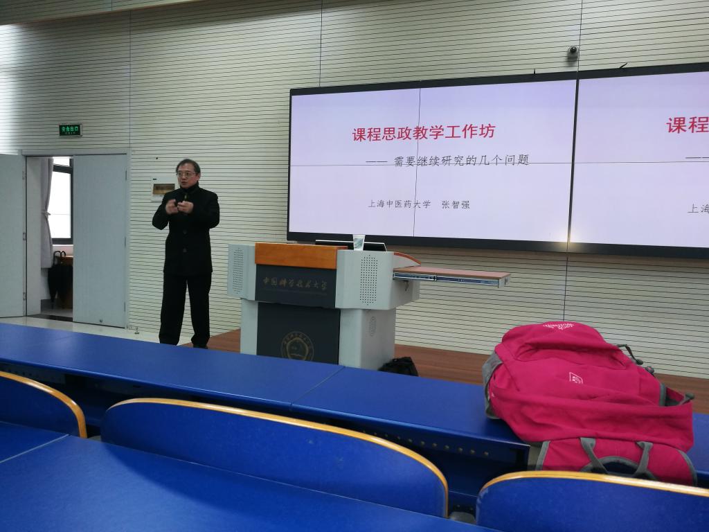 张讲授的讲座结合中央文件精神和要求具体阐述了“所有课程都有育人功能、所有教师都有育人责任”的课程思政内涵,分析了将理想信念、社会主义核心价值观和弘扬中华优秀传统文化教育融入专业教学的可行性和有效性。他列举了上海中医药大学人体解剖学、方剂学等课程融合思政元素的案例,讲解了在课程思政改革方面的实践和经验。