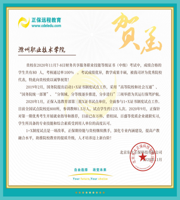 11月9日,“1+X”财务共享服务(中级)职业技能等级证书全国首次考试成绩公布,在学校领导高度重视及关怀下,各部门协同配合,培训师生辛劳付出,财务会计系80名学子喜创佳绩,通过率100%。beat365远超同类兄弟院校,被评为优秀院校代表,可喜可贺!