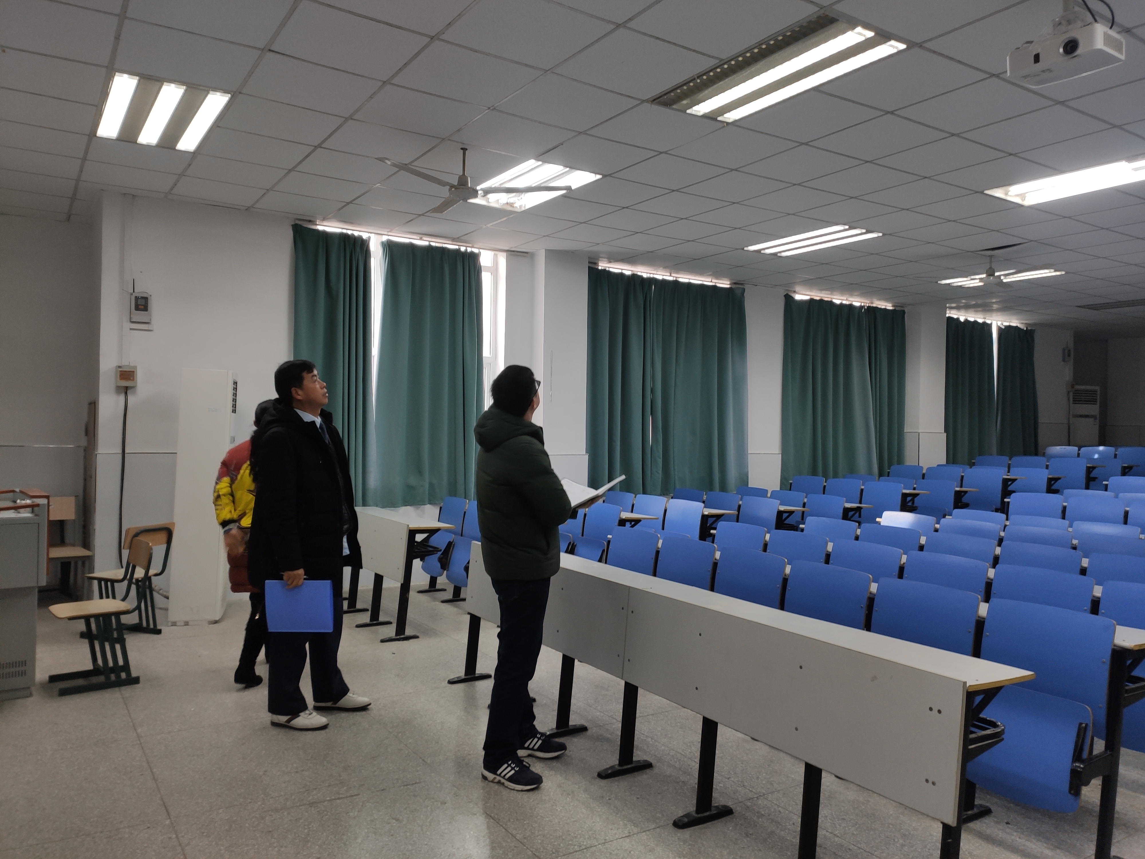 1月6日上午,管理学院组织开展安全大检查工作。管理学院党总支书记耿学刚、副院长颜洲、副书记何文婧带领管理学院相关老师,对管理学院办公区域、教学区域、实训中心、学生活动场所等开展安全检查。耿学刚带领大家对办公室、教学、实训中心和学生活动场所的各类设施设备等深入排查,对发现的相关隐患问题逐一记录,并对下一步教学楼布置和安排做了相关工作要求,指出学院安全检查工作要建立起完善的长效管理机制,规范管理学院安全管理的规章制度,提高安全管理工作水平。