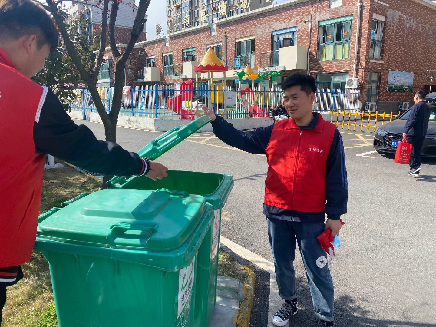 管理学院团总支于2021年3月24日下午在官塘小区开展“弘扬雷锋精神,弘扬时代新风”志愿者活动。本次活动由团总支书记秘书张智贤负责,团总支各部门成员积极参与。活动中各志愿者成员积极配合工作,认真清理社区内垃圾烟头等杂物,并把凌乱的垃圾桶摆放整齐。