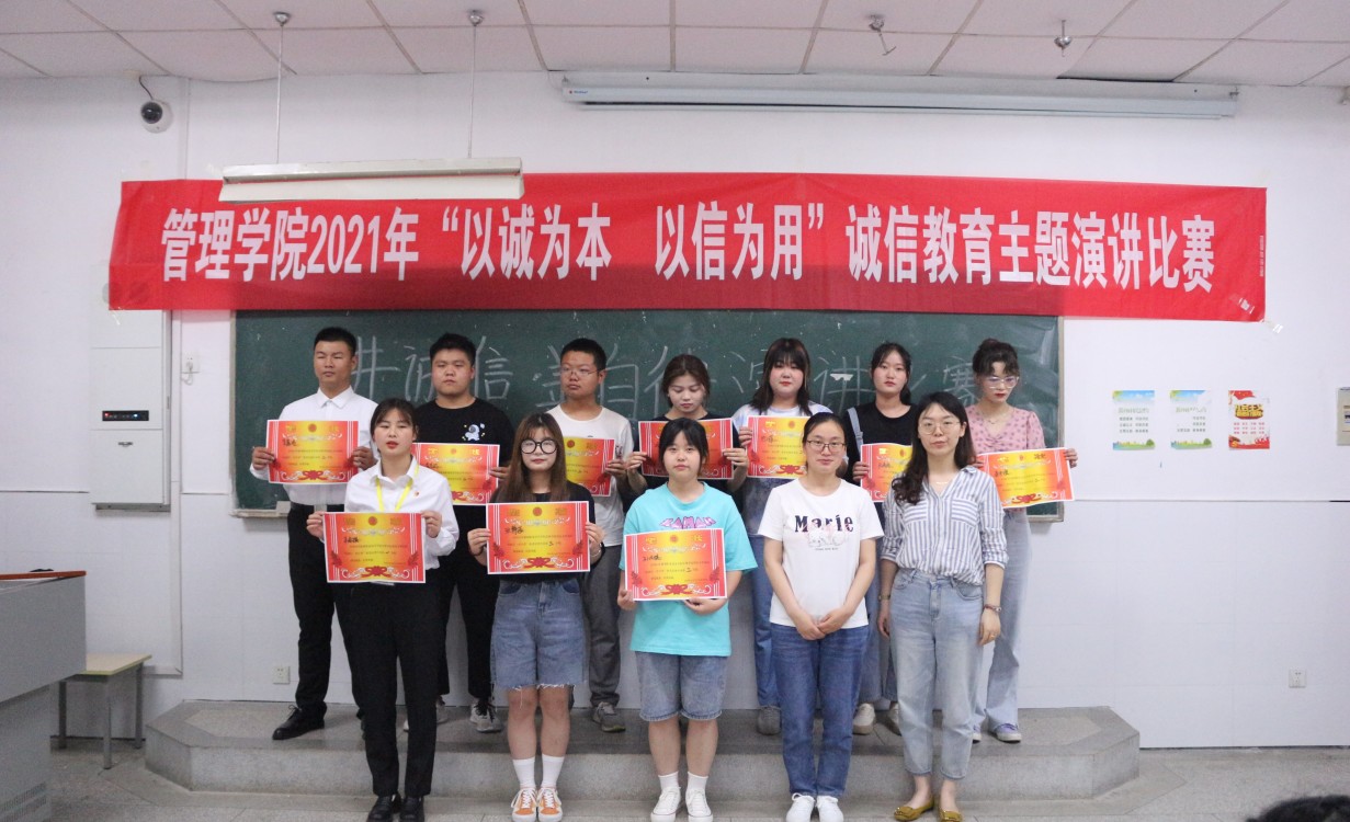 管理学院团总支于6月2日中午在1102教室开展了“以诚为本,以信为用”诚信教育主题演讲比赛。此次活动由团总支办公室干事彭怡梦主持,管理学院团总支部分人员参加,邀请了袁一老师和吴珍珍老师作为本次活动的评委。