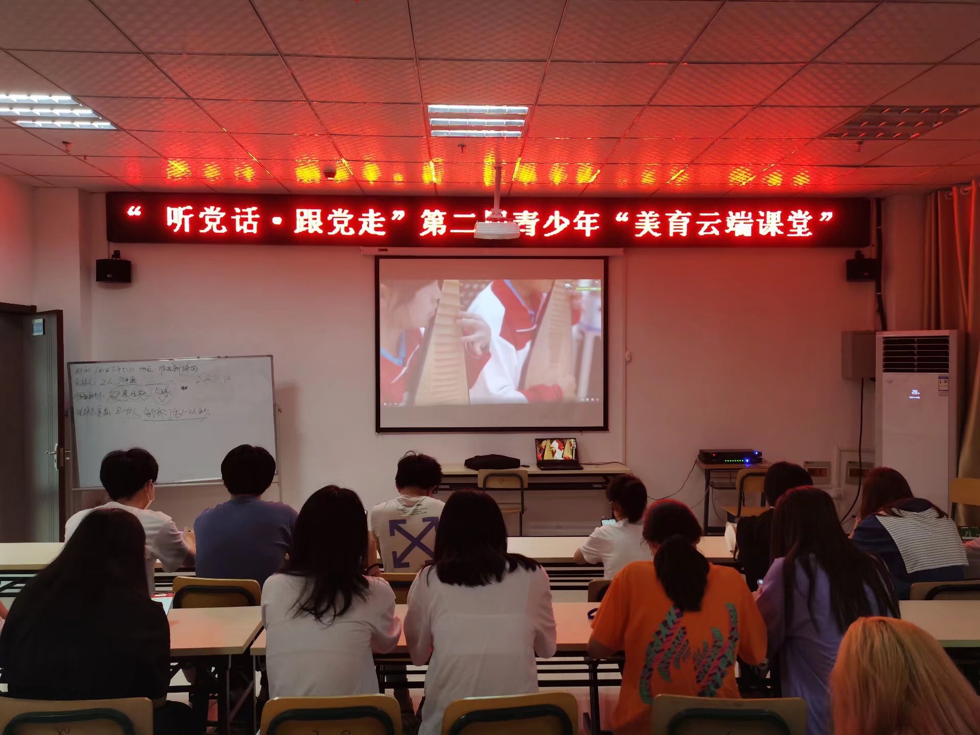 在庆祝中国共产党成立100周年之际,管理学院于2021年6月16日在大学生活动中心328室开展了美育教育云端课堂。