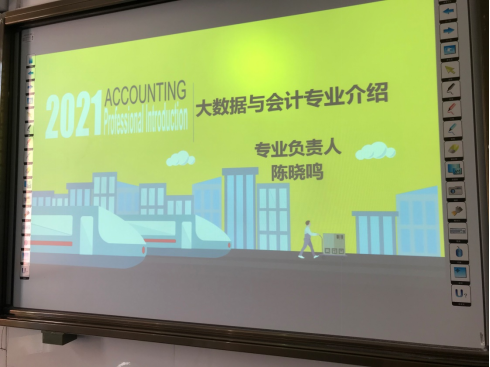 9月14日,管理学院财务会计系2021级大数据与会计3班的50多名学生在1315教室参加专业介绍讲座。