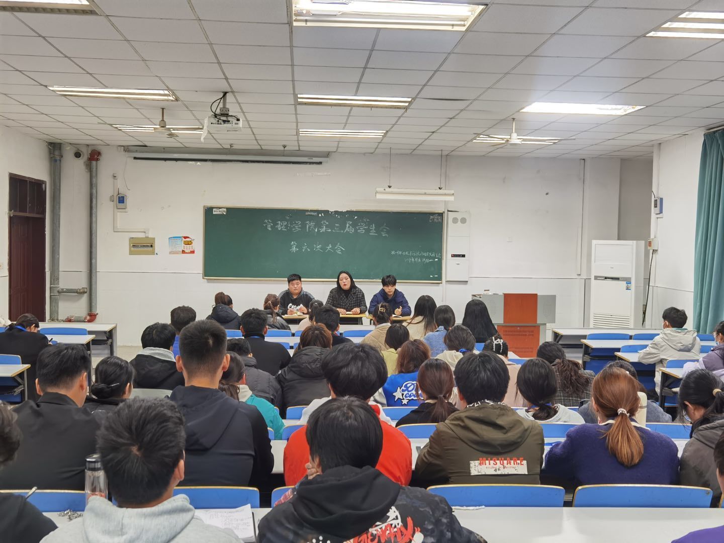 11月29日下午18点,管理学院学生会第六次大会在致真楼1101教室举行,由管理学院学生会主席王梦缘、院副主席孔珺禾、殷茂源和马骏及学生会全体成员参加了此次会议。