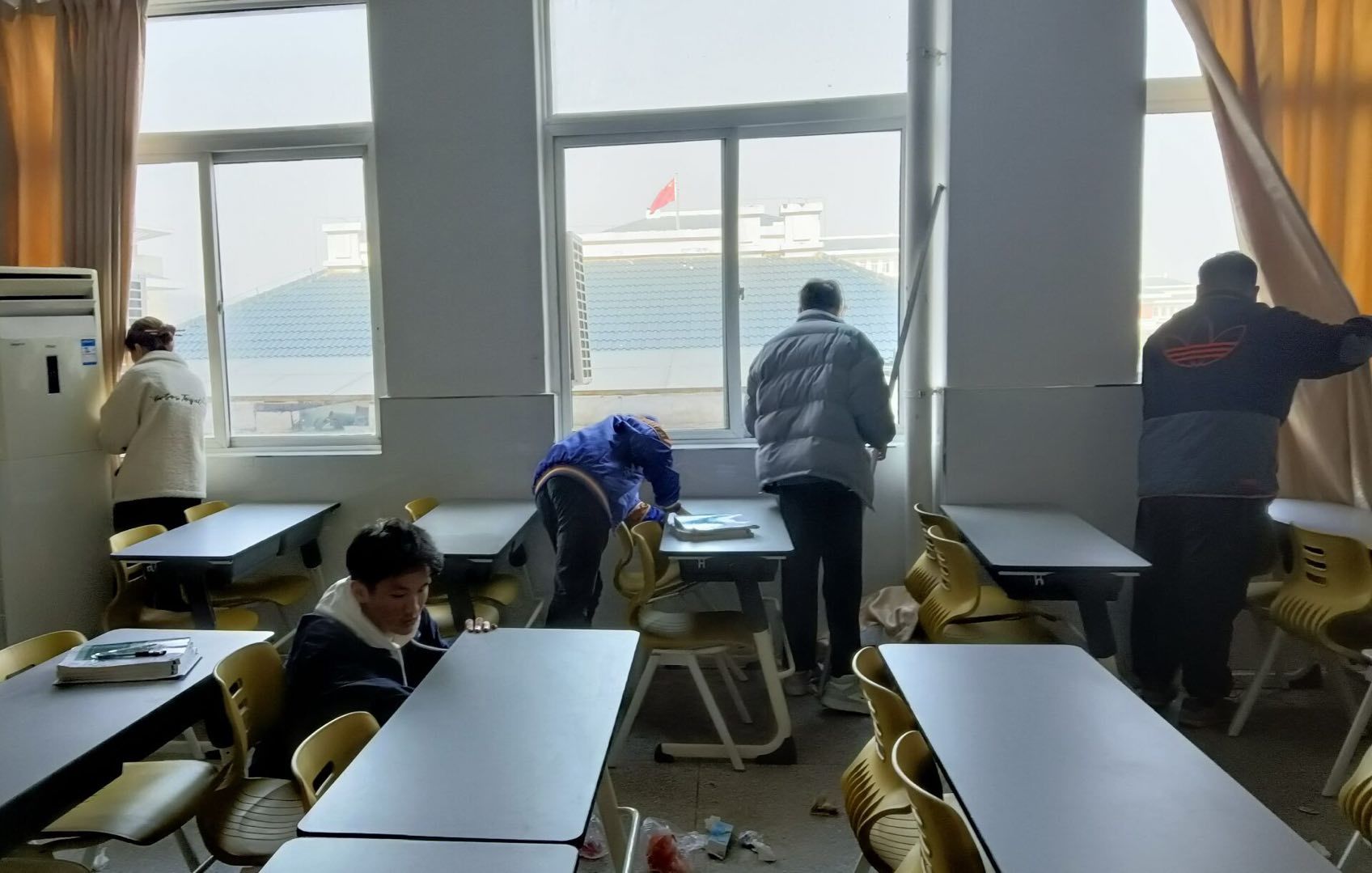 同学们认真对地面、墙面、墙角、桌面、抽屉、讲台、黑板、门窗、卫生角进行彻底清扫,一些比较隐蔽的卫生死角,也被同学们细心清理。最后,在大家齐心协力的合作下,清扫工作圆满完成。
