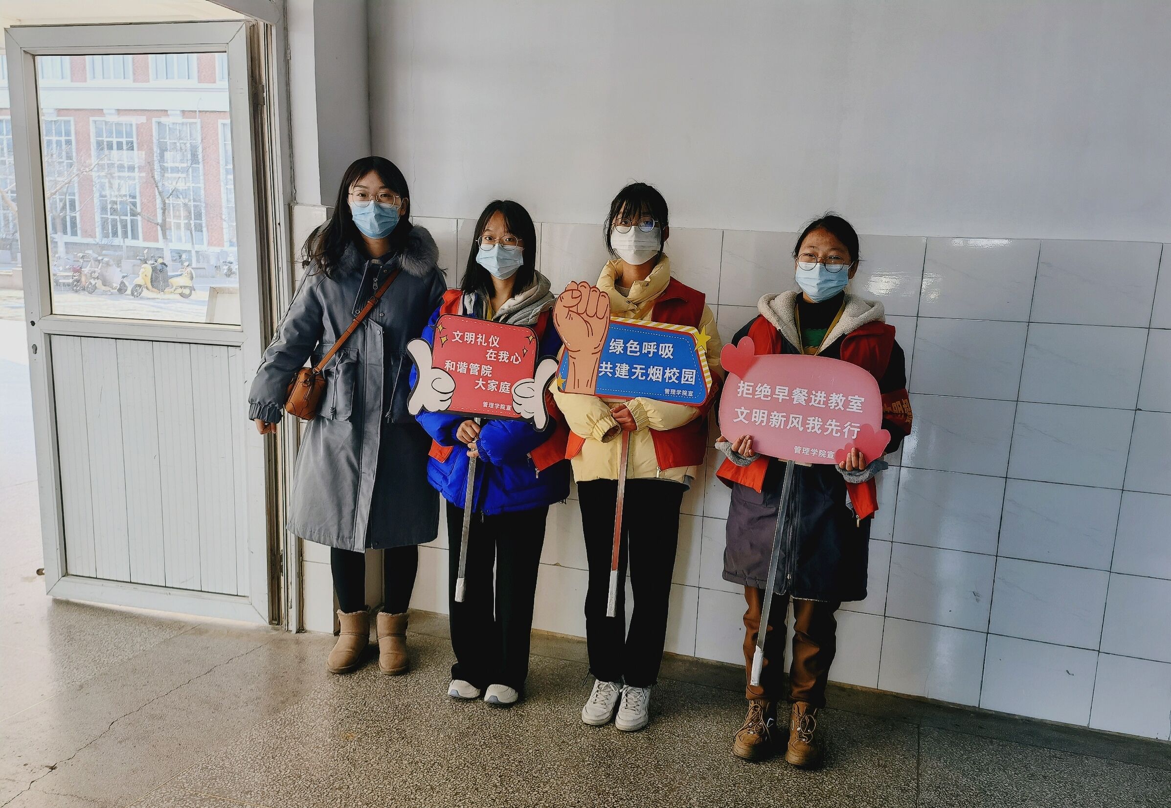 新年新气象,文明督察来报到。管理学院自2月21日起,每天安排教师督察员和学生督察员在1号教学楼进行文明督察工作。